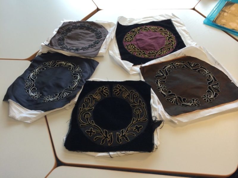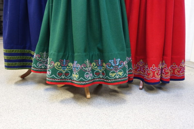 - Upphlutir úr klæði, damaski og flaueli í ýmsum litum. Lagðir ekta eða óekta borðum og kniplingum