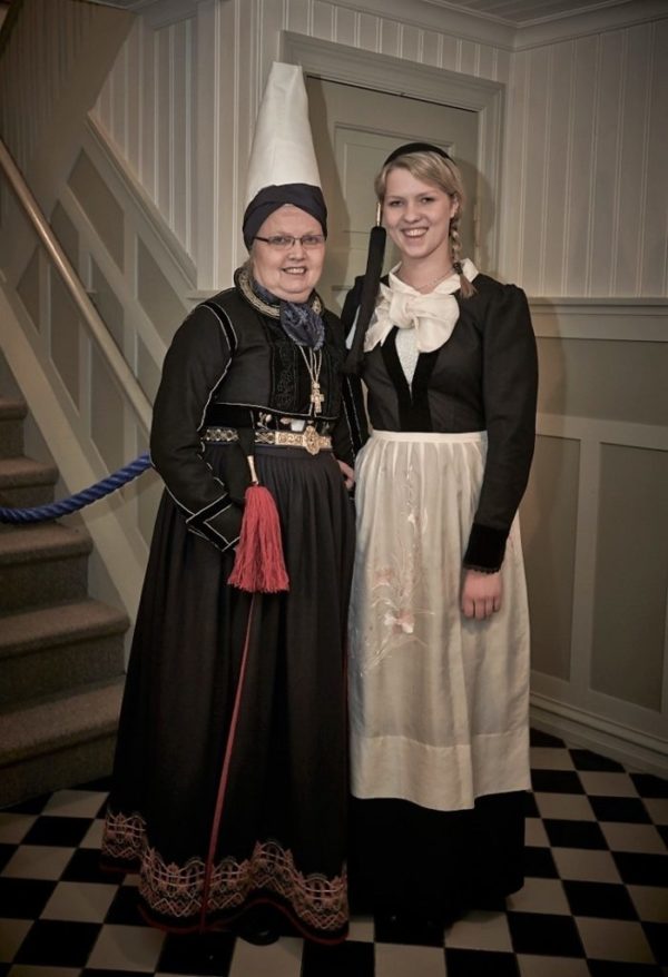 Um hálsinn er oft talað um hvítt lín eða klúta sem mikið var flutt inn af. Utanyfirflíkin var hempan sem hefur þróast í gegnum árin og hatturinn á faldinum.