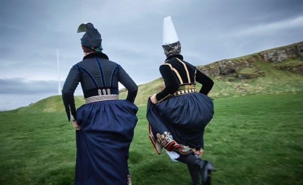 Í skriflegum heimildum er að finna frásagnir af litskrúðugum klæðnaði kvenna á 17. og 18. öld. Þetta styðja samtíma málverk og teikningar. Þar sjást konur í rauðum og grænum pilsum með gular svuntur.