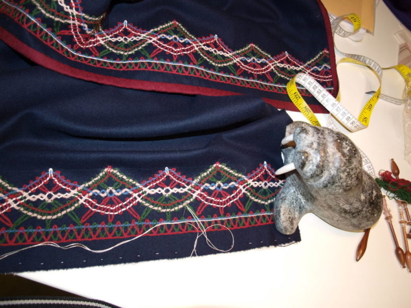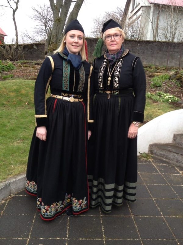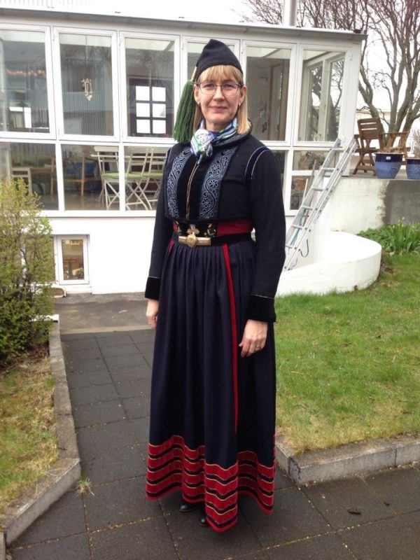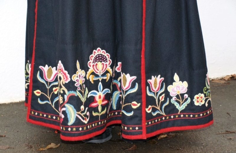 Dökkir upphlutir voru oft bryddaðir með rauðu í handveg og hálsmál.