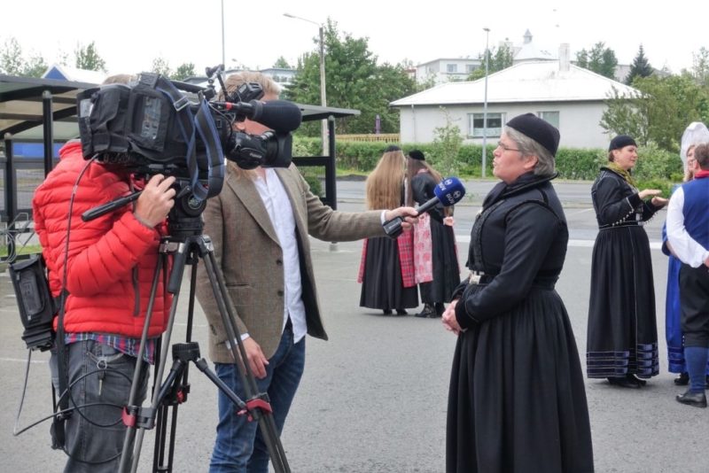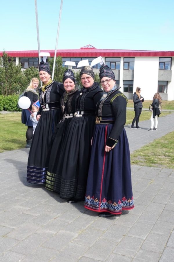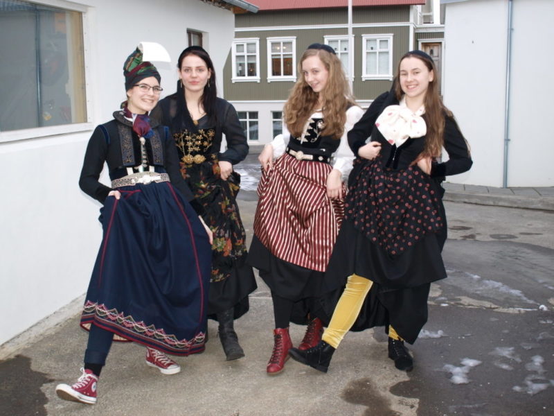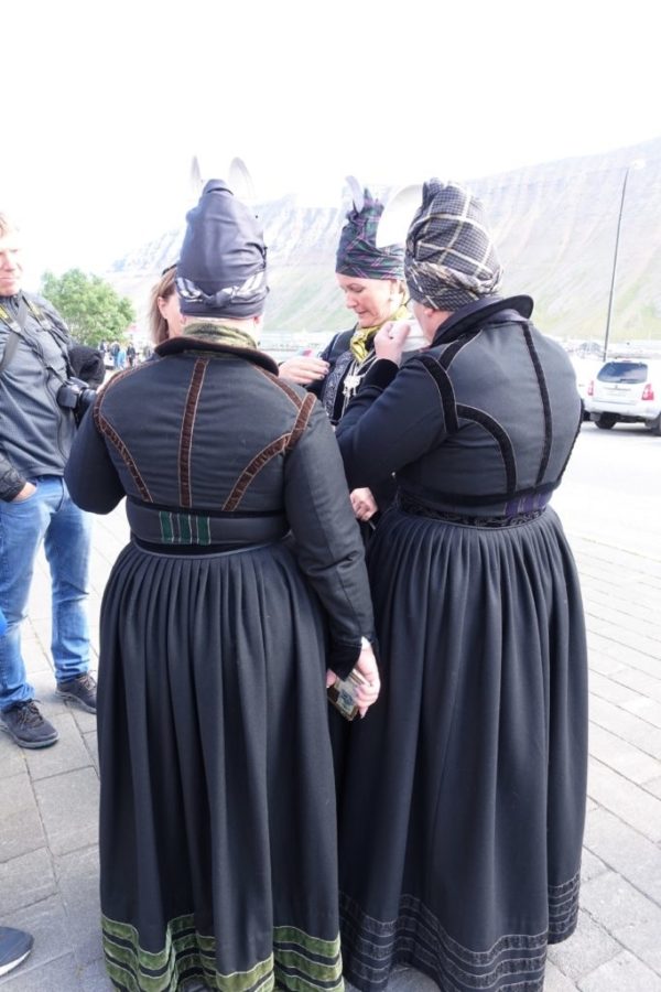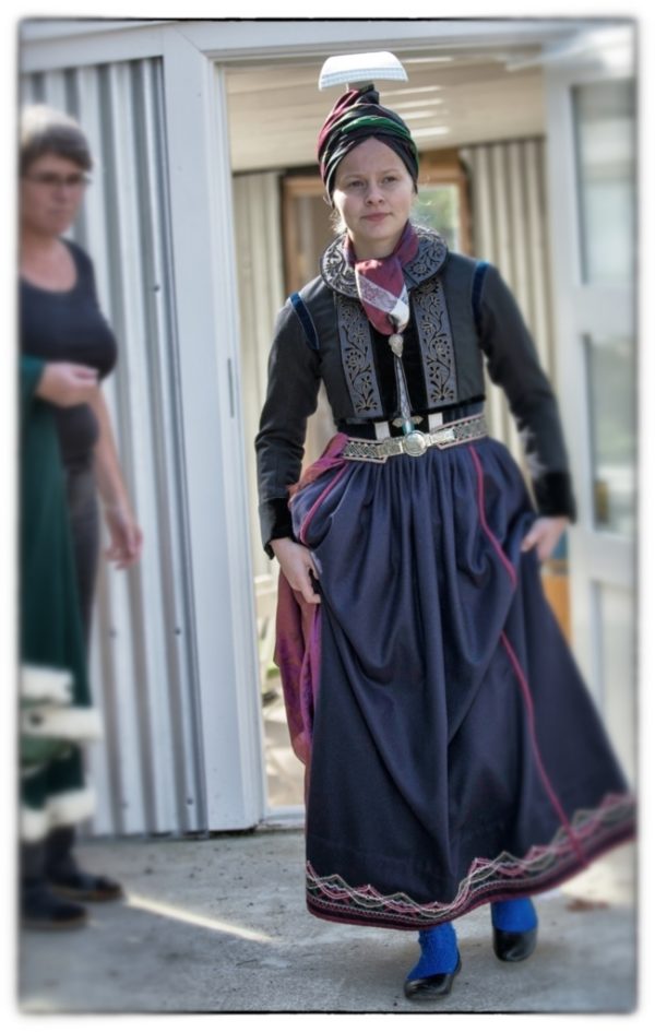 - Spaðafaldur var festur á höfuðið með léreftshúfu. Þar utanyfir var vafinn klútur
