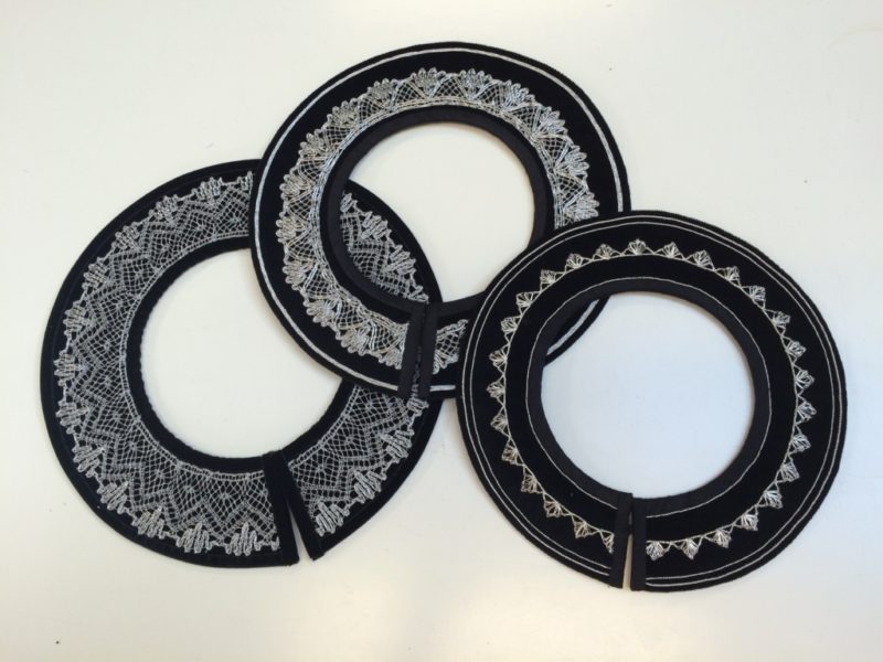 Kragar eru ekki lengur saumaðir fastir á treyjuna. Skreytingar urðu meira eintóna og knipl varð vinsælt. Kragarnir urðu þynnri og stífari.