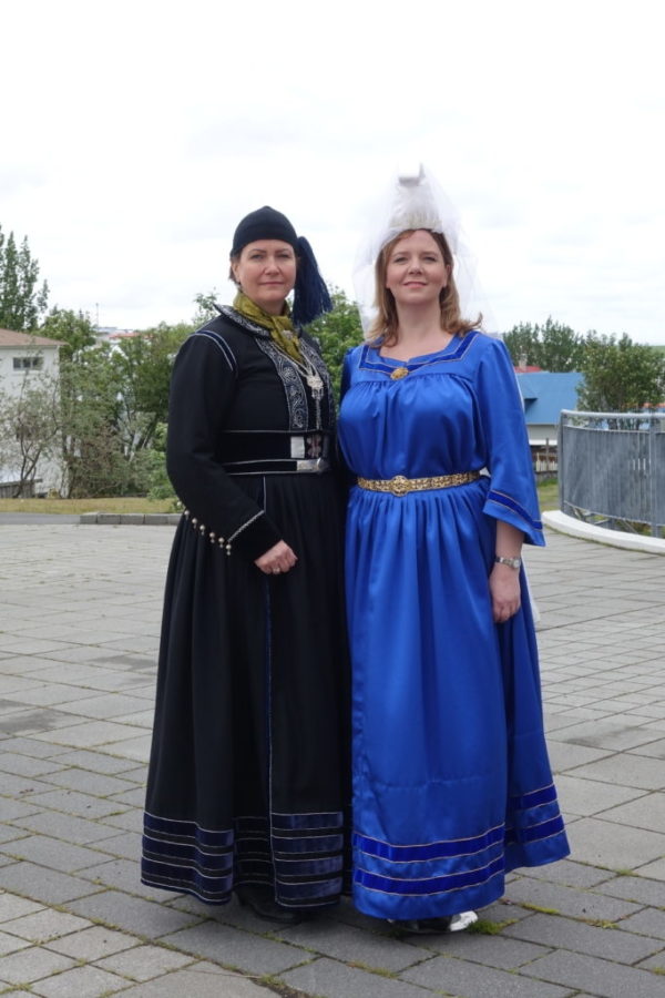 Skart getur verið mismunandi á höfuðbúnaðinum. Bylgja er með spöng en Hanna Lind með stjörnuband