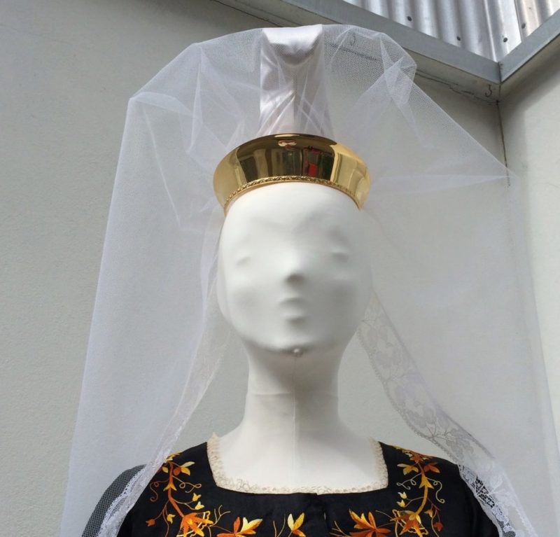 Spöng og koffur er oftast sett utan um fald og blæju, en stundum undir tjullið. Stjörnuband sést mjög oft á gömlum myndum undir tjullinu.