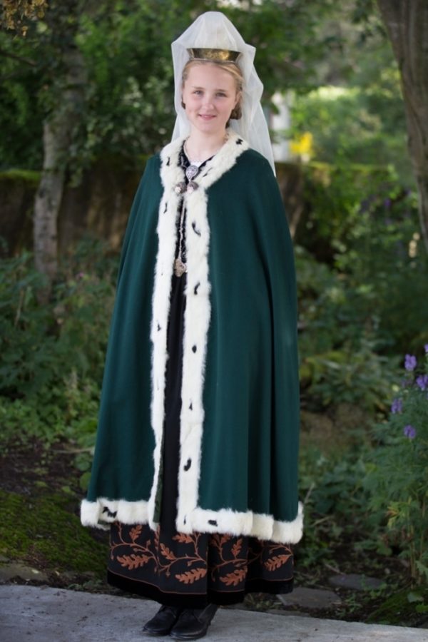 Í útkant er saumaður skinnkantur. Hann getur verið hvítur með svörtum skottum, (hermelínskinn). Einnig dökkbrúnn eða svartur úr minnka-, refa- eða kanínuskinni.
